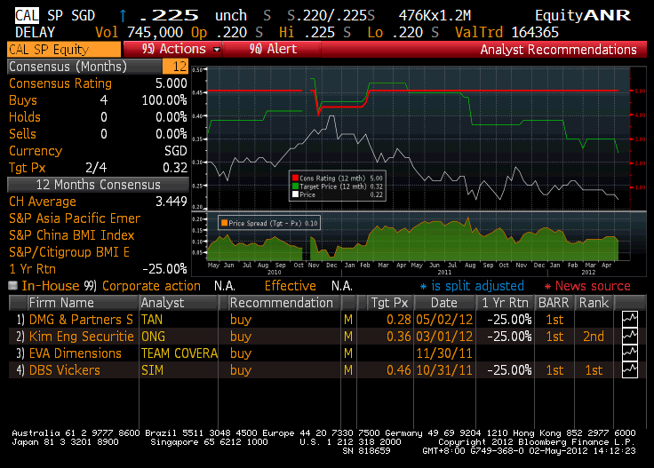 It is true that CAL has disappointed the market previously as their sales traction in the FMD vaccines is slower than expected. However, going forward, sales for the FMD seem to be on an uptrend (albeit from a low base), with a potential recovery in margins, as it slowly gains economies of scale. (FMD has not enjoyed economies of scale yet in 1QFY12).